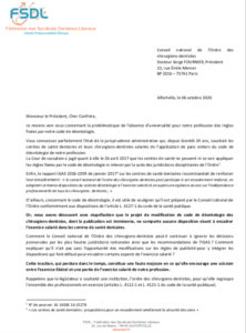Dans un courrier daté du 6 octobre dernier, la FSDL fait part au Président du Conseil National de l’Ordre de sa stupéfaction, courrier resté sans réponse à ce jour.