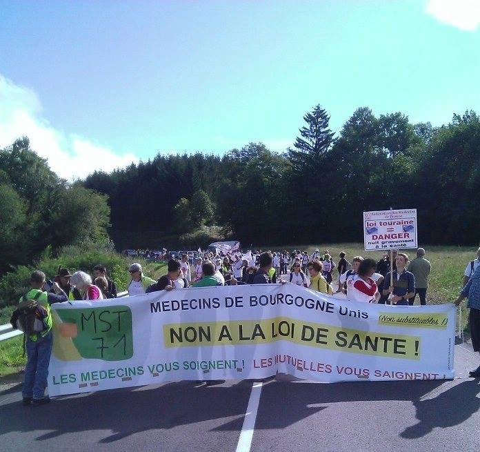 Afin de marquer une nouvelle fois leur ferme opposition à la loi de Santé de Marisol Touraine, les professionnels de santé ont marché du vendredi 11 septembre au dimanche 13 septembre de Chalon-sur Saône à Château-Chinon.