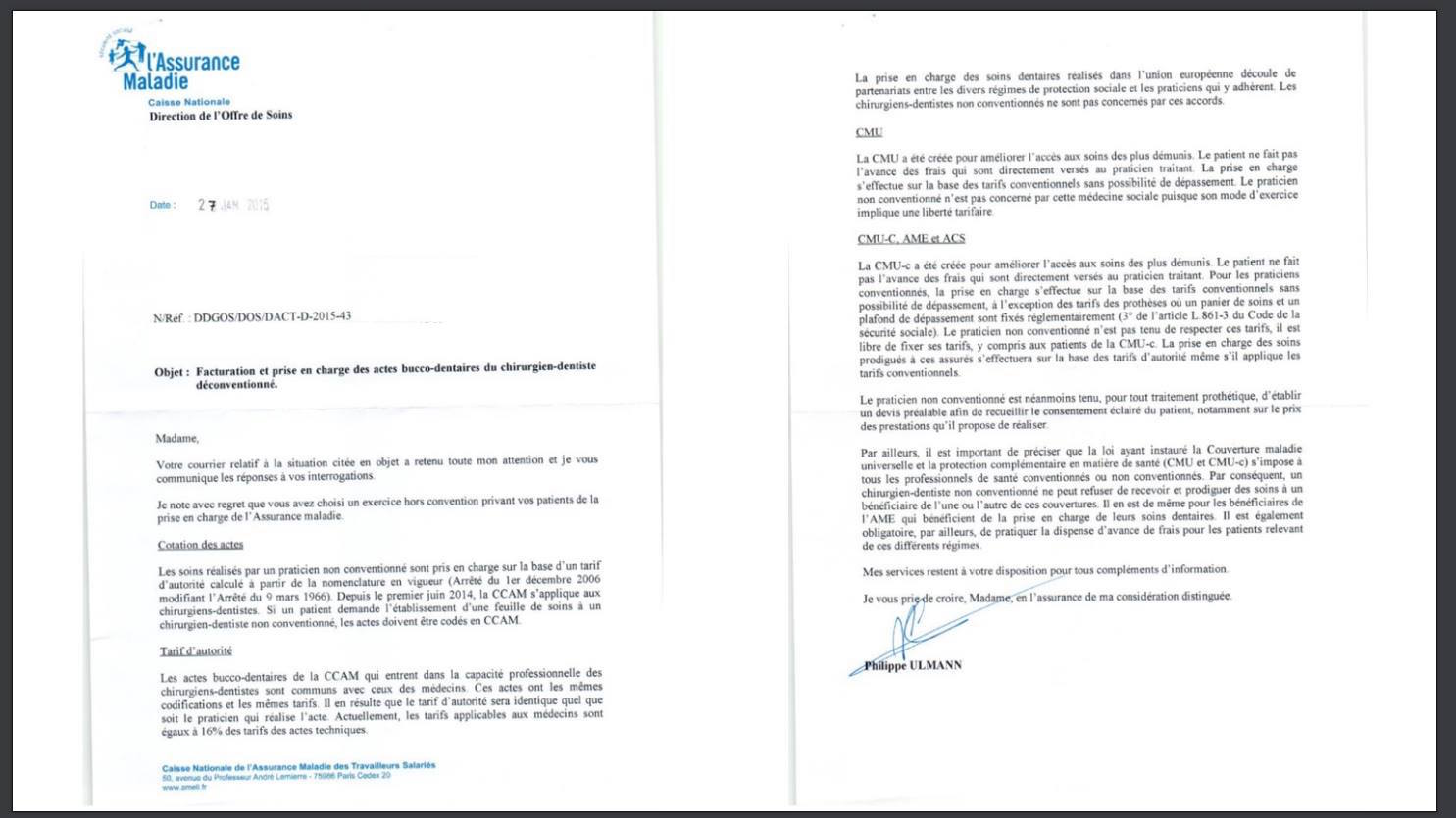 - En ce qui concerne les patients, consulter un praticien non-conventionné revient à abandonner toute idée de prise en charge par l’assurance obligatoire et une très faible participation de leur assurance complémentaire. En effet le remboursement des soins réalisés par un praticien déconventionné se fait sur la base du tarif d’autorité soit 16% du tarif des soins en CCAM et 40 centimes pour la consultation.