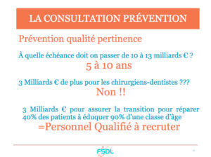 Depuis toujours et encore plus maintenant, pour la FSDL, les enjeux du combat syndical des années à venir passe par la valorisation de la prévention et la prise en charge sur le principe du juste soin au juste coût. Et ce projet prend tout son sens si nos assistants dentaires peuvent assumer sous notre contrôle une partie des tâches précitées.
