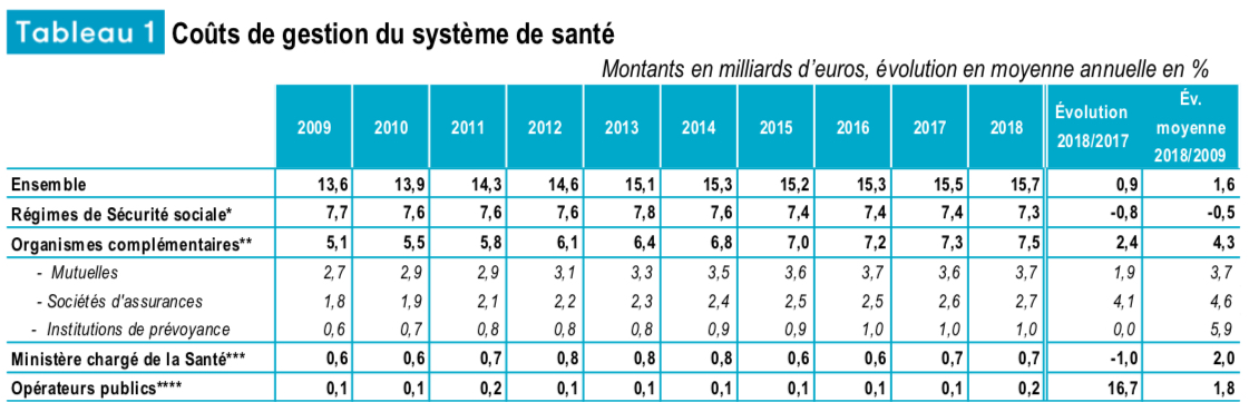 Quelle ne fut pas notre surprise de constater que les frais de gestion ont explosé ces derniers temps augmentant de 4,3% en moyenne par an depuis 2009, dépassant même ceux des régimes de sécurité sociale en 2018.Voir ci dessous: