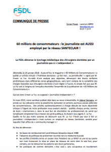 Il est temps que cette collusion entre réseaux commerciaux et une certaine presse s’arrête. La FSDL invite les journalistes à venir rencontrer son Président, le Dr Patrick Solera, qui est prêt à échanger avec eux sur la réalité de l’exercice des chirurgiens-dentistes.