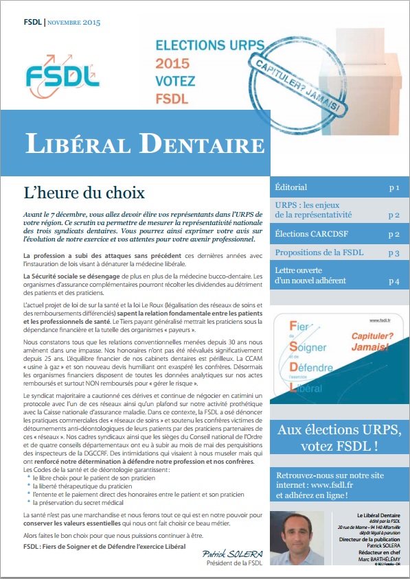 Le Libéral Dentaire de novembre 2015: Édition spéciale URPS