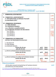 Voici le tableau récapitulatif de la grille des taux minimaux des personnels des cabinets dentaires libéraux applicable au 1er janvier 2018. Ce tableau reprend les taux minimaux pour tous les personnels d’un cabinet dentaire: Personnel d’entretien, personnel administratif ou personnel technique.