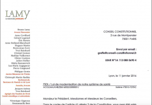 Nous avons émis des observations en direction des membres du Conseil Constitutionnel saisi par un groupe de sénateurs et de députés afin de leur exposer nos arguments et plus particulièrement contre les articles mettant en place le tiers payant généralisé (TPG)