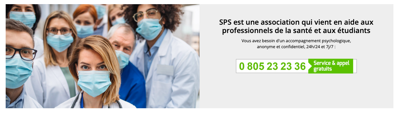 L’ASSOCIATION SPS (Soins aux Professionnels en Santé) Reconnue d’intérêt général avec 100 % d’appels décrochés.